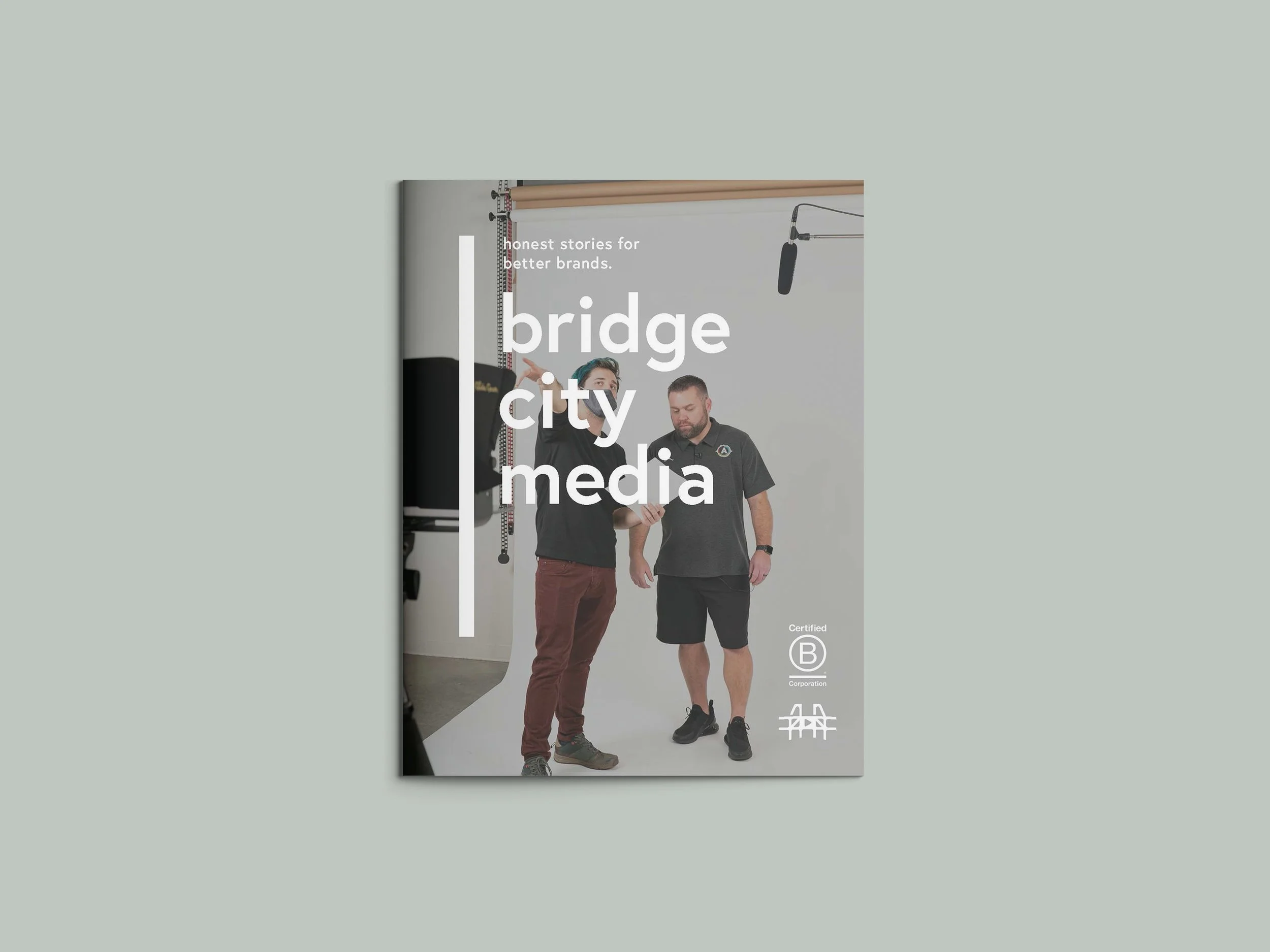 Wrote and designed the following materials in my capacity as Creative Director for Bridge City Media. As Creative Director, I led and executed our in-house and client design work, refreshing the company’s brand in early 2022 to reflect the video production company’s transition to a video-focused brand agency. My brand refresh was an “everything but the logo” project, including services descriptions, a new company catalog, business card design, email signatures, company typefaces and colors (updated for accessibility purposes), website rewrite and redesign, and a new tagline – Honest stories for better brands.